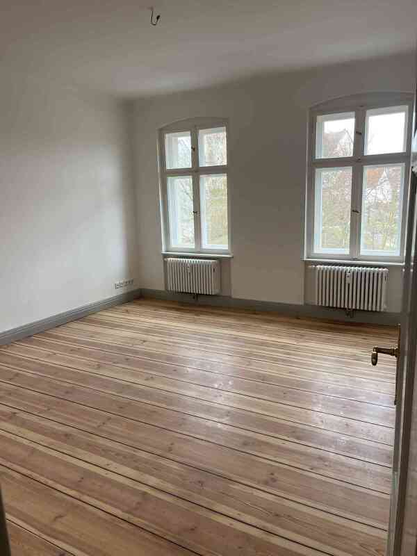 Bei dieser 3-Zimmerwohnung handelt es sich um einen Erstbezug nach Sanierung. Sie befindet sich im 1. Obergeschoss und verfügt über ein Fenster im hellgefliesten Bad mit Badewanne sowie eine Fußbodenheizung. In den Räumen der gut geschnittenen Wohnung sind die Wände glatt gespachtelt, mit Vlies tapeziert und weiß gestrichen. Als Bodenbelag sind aufgearbeitete Holzdielen vorhanden. In der Küche befindet sich eine kleine Kammer, die man als Stau- und Lagerraum nutzen kann.