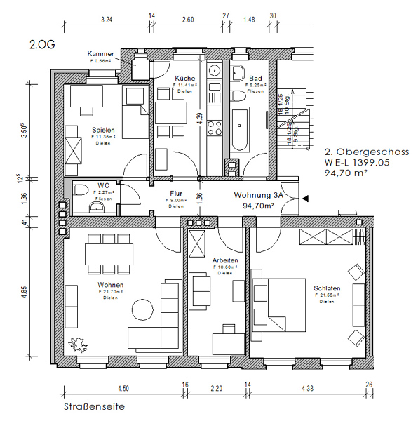 Das Wohnhaus wurde saniert und verfügt über 3- und 4-Raumwohnungen teilweise mit Balkon. Öffentliche Parkmöglichkeiten befinden sich auf der gegenüberliegenden Straßenseite.