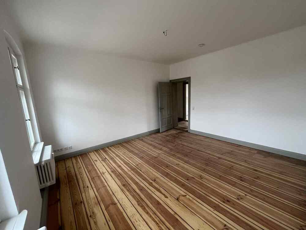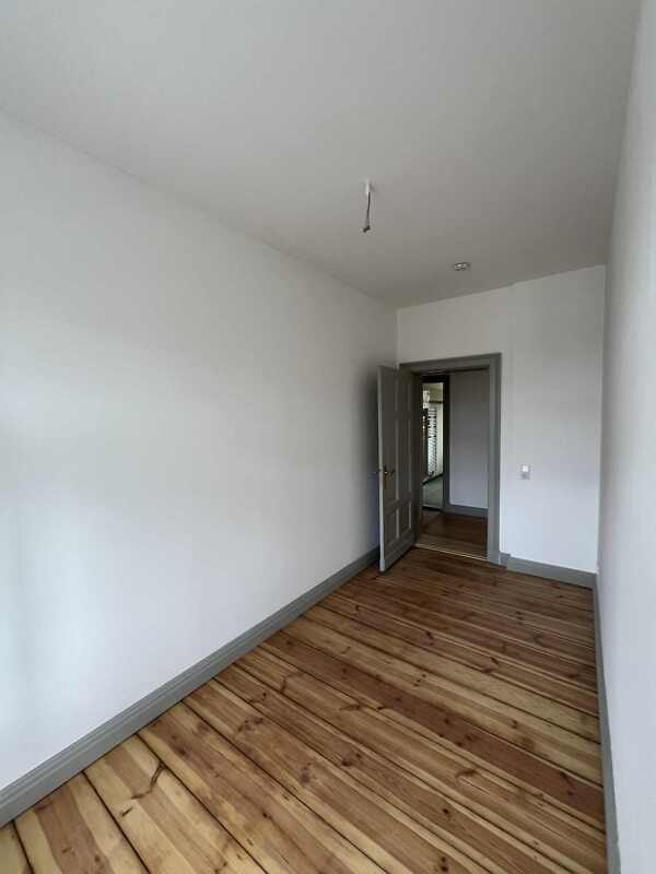 Bei dieser 3-Zimmerwohnung handelt es sich um einen Erstbezug nach Sanierung. Sie befindet sich im 2. Obergeschoss und verfügt über ein Fenster im hellgefliesten Bad mit Dusche sowie eine Fußbodenheizung. In den Räumen der gut geschnittenen Wohnung sind die Wände glatt gespachtelt, mit Vlies tapeziert und weiß gestrichen. Als Bodenbelag sind Holzdielen vorhanden. In der Küche befindet sich eine kleine Kammer, die man als Stau- und Lagerraum nutzen kann. Die Wohnung verfügt über einen Balkon, Keller und ein hofseitigen Sonnenschutz.
